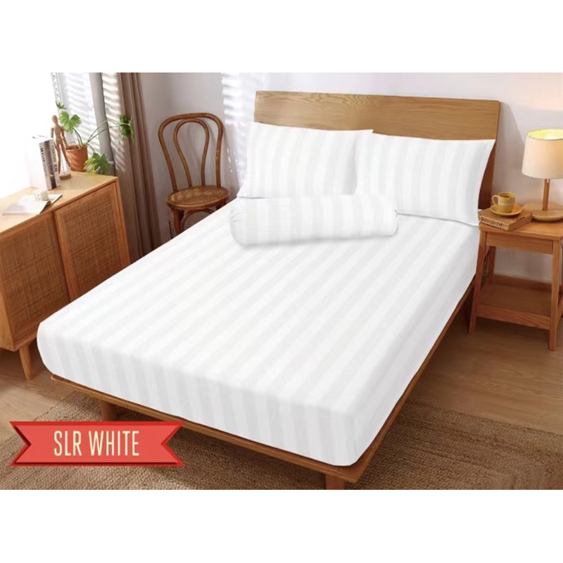 Set Sprei Hotel Karet Sudut Bahan Katun Premium Embos Salur Tinggi 20cm