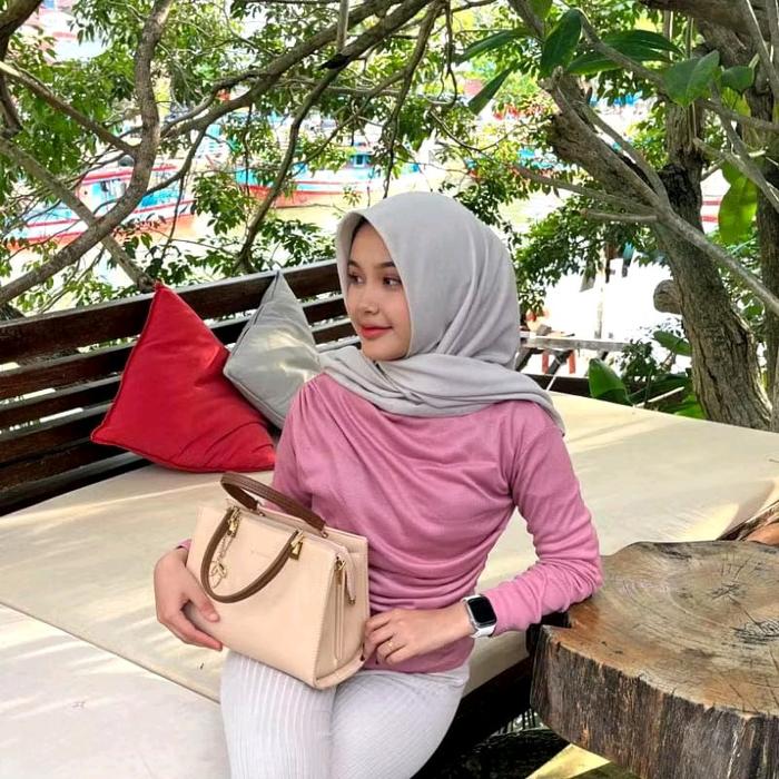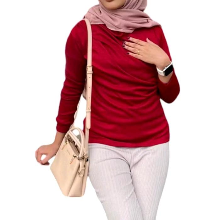 April Top Atasan Wanita Korean Top Baju Knit Basic Long Sleeve April Top Panjang Kemeja Bona Viral - Hitam, Standar L
