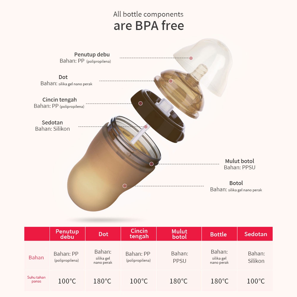 VICTOKY Dot Bayi Botol Susu Bahan Silikon Nano Perak Botol Bayi Susu Dengan Sedotan