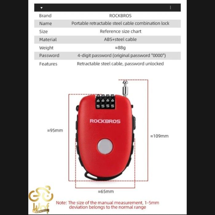 TERLARIS ROCKBROS RK0302 KUNCI GEMBOK SEPEDA HELM TELESCOPIC BICYCLE LOCK CABLE