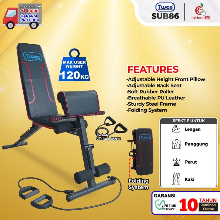 TERLARIS SIT UP BENCH TWEN SUB86 SIT UP BENCH ADJUSTABLE FOLDING FITNESS