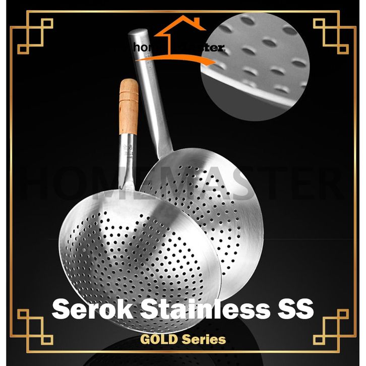Hommaster Serok/Saringan/Tirisan/Strainer Gorengan/Masakan/Makanan Jumbo Stainless/Handle Kayu/Wooden SS