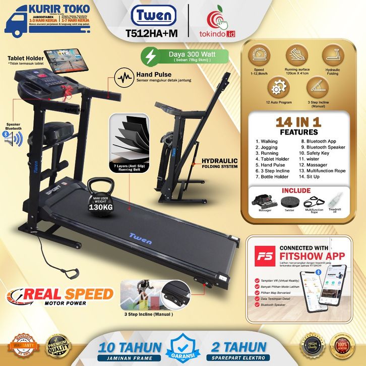 TERLARIS TWEN T512HA +M TREADMILL LISTRIK TREADMILL PORTABLE TREADMILL MULTIFUNGSI TREADMIL LIPAT TREADMILL ELECTRIC LOW