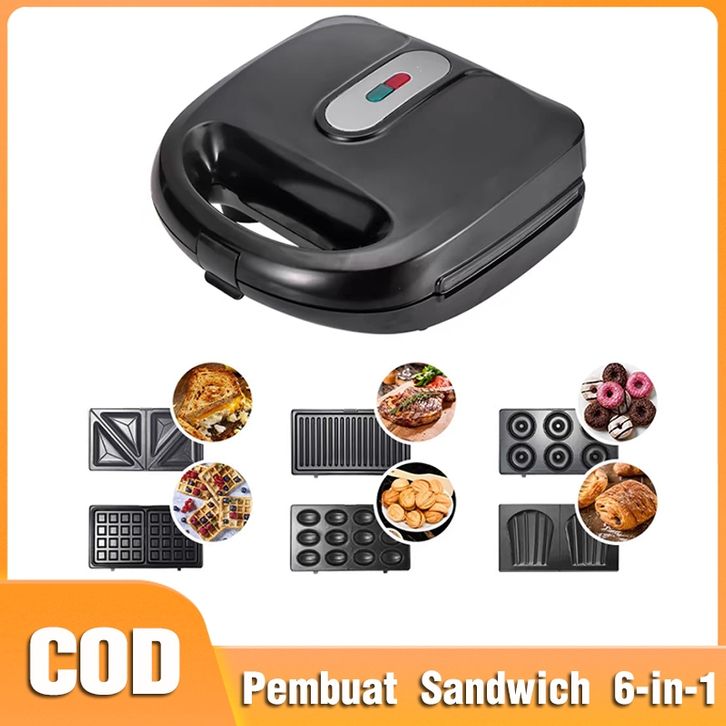 Pembuat wafel 6 in 1, pembuat wafel, pembuat donat, mesin pemanggang, pembuat sandwich panini