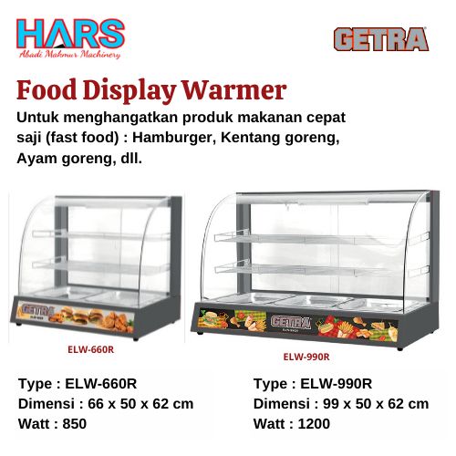Showcase Penghangat Makanan ELW-660R/ELW-990R GETRA/ Food Display Warmer 30 ~ 80 °C