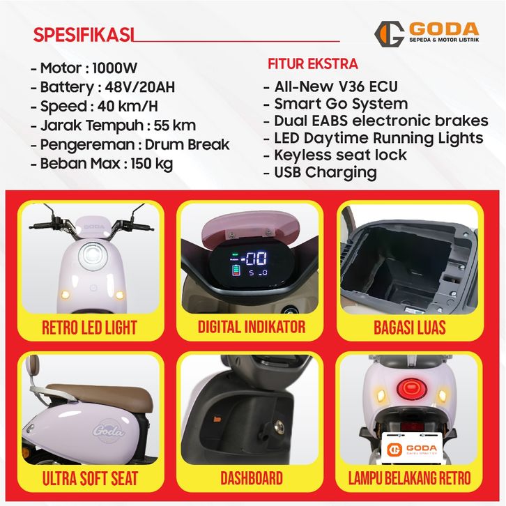 TERMURAH✅ GODA 166 PLUS MANGO Sepeda Listrik 48V 20AH Garansi Resmi