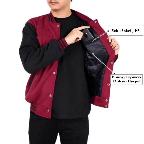 GRATIS ONGKIR✅ Jaket Baseball Varsity Polos Full Lapisan Dalam / Jaket Varsity Polos Vintage Baseball Pria Wanita Terbar