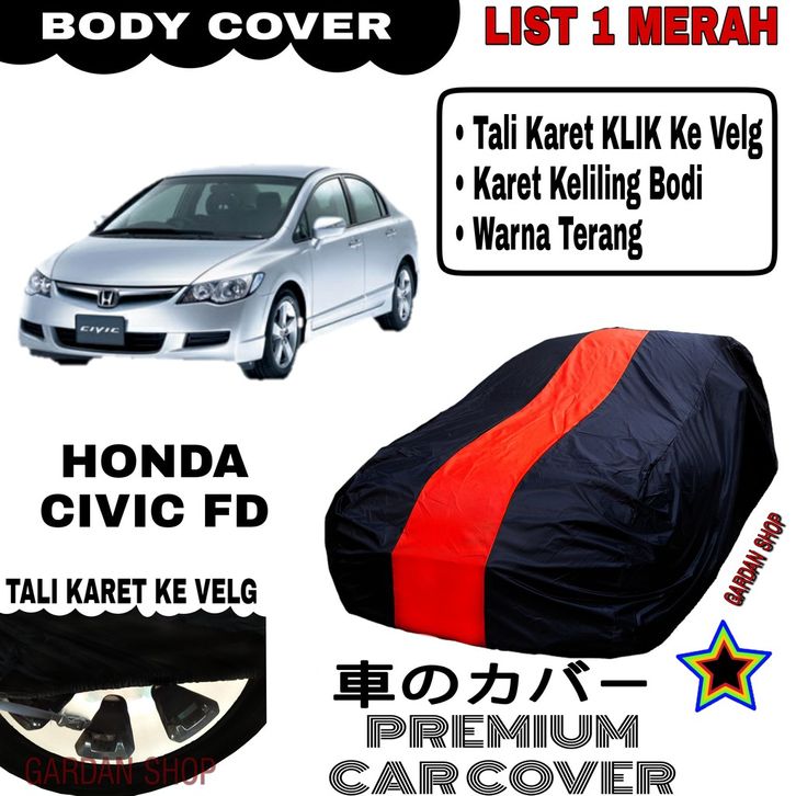 sarung mobil avanza sigra sedan xenia Body Cover HONDA CIVIC FD List Single MERAH Sarung Mobil Penutup Civic PREMIUM