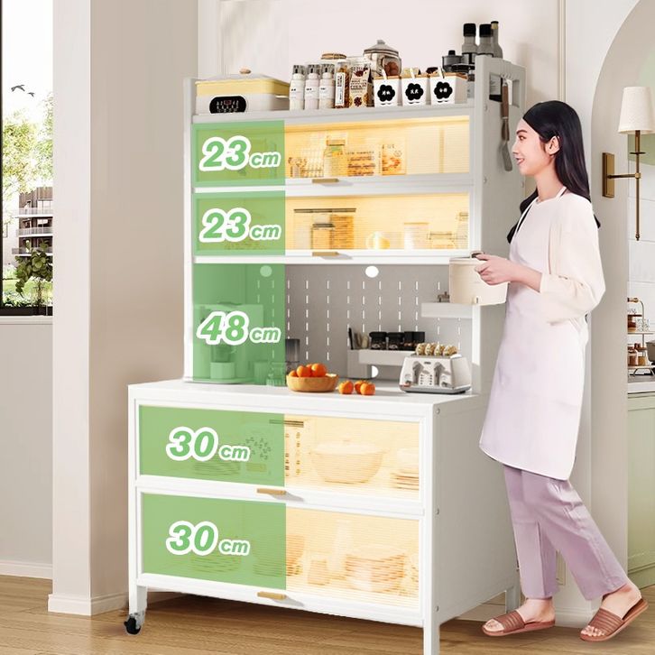 iSPECLE Rak Dapur Tertutup Lemari Dapur Dengan Pintu Rak Penyimpanan Microwave Oven Rak Multi-Lapisan Lemari Piring Lan