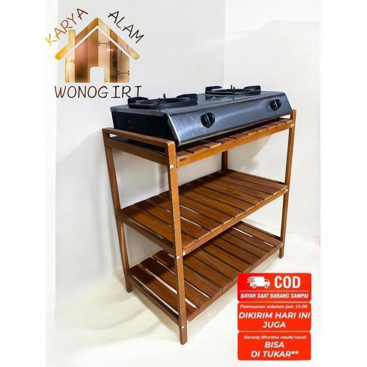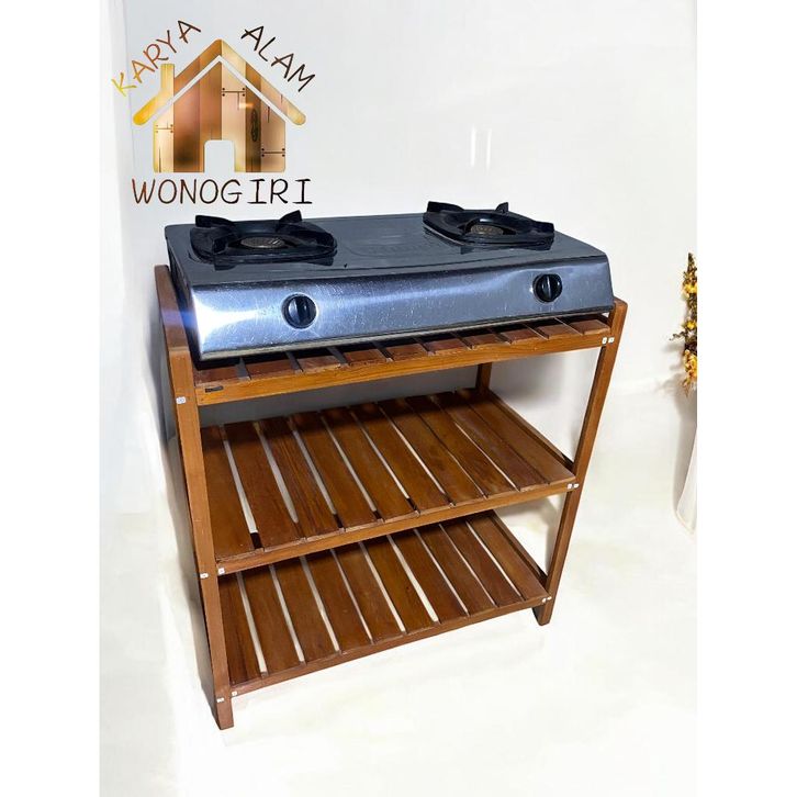 Meja Serbaguna Kompor Gas 3 Susun Kayu Minimalis Bunga Dapat Diperpanjang - Furniture