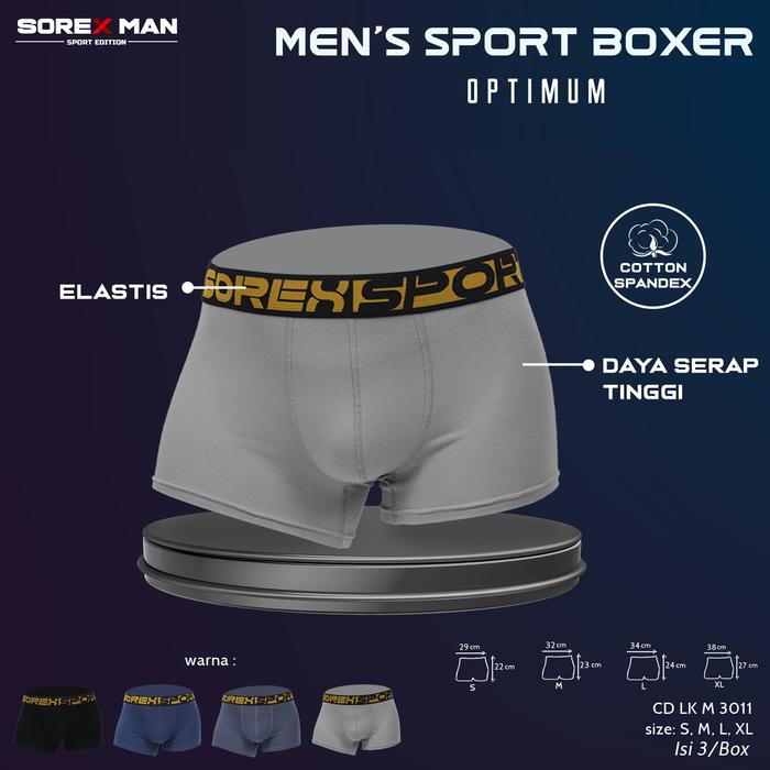 (3 PCS) Sorex Man Boxer Sport Pria Celana Dalam Optimum Katun CD 3011