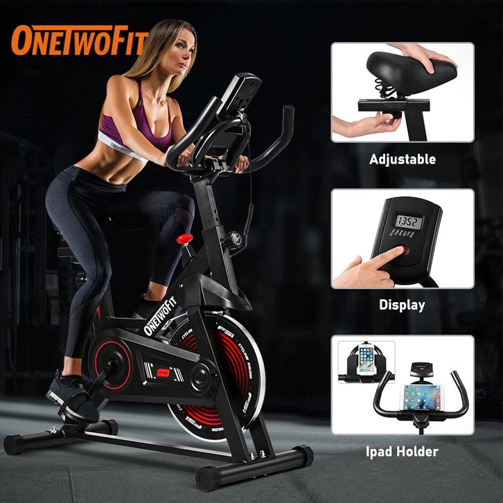 TERLARIS ONETWOFIT ALAT FITNESS SPINNING BIKE LCD MONITOR ADJUSTABLE SEAT EXERCISE BIKE SEPEDA STATIS FITNESS CARDIO SEP