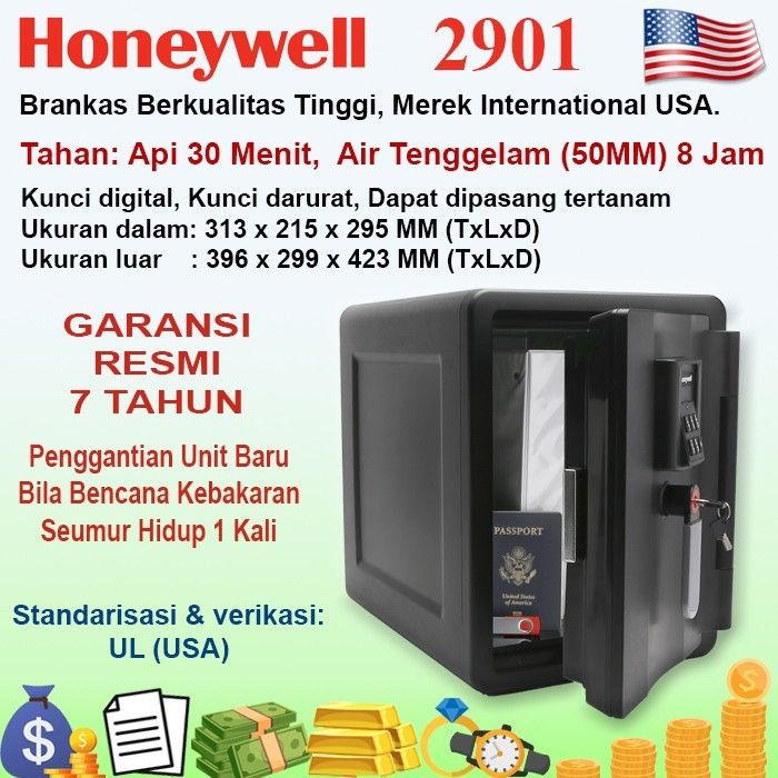 Brankas Honeywell 2901, 2911 Tahan Api dan Air, 7 Tahun, Original