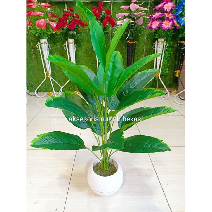 BUNGA SUDUT POHON PISANG ARTIFICIAL JUMBO 18 DAUN DENGAN POT BOLA