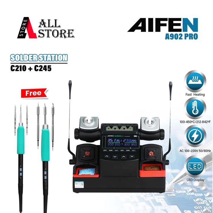 AIFEN A902 PRO SOLDER STATION ORIGINAL - SOLDER 2 GAGANG C210 C245 - SOLDER TEKNISI LAYAR LED CEPAT PANAS - SOLDER C210