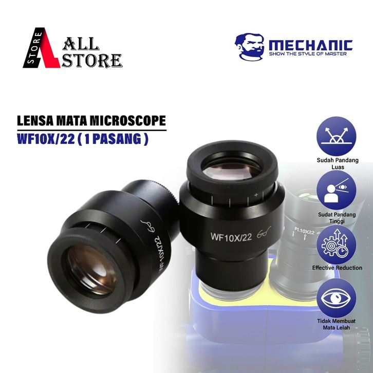 Mechanic WF10X/22 Super X Lensa Mata Microscope Original – Eyepiece Mikroskop 10X/22mm Pasangan Lensa Optik Berkualitas