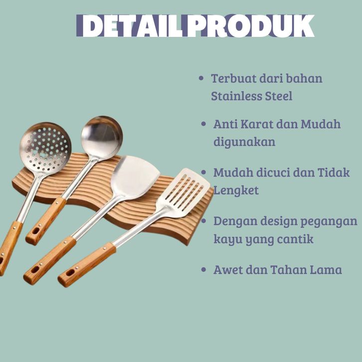 PPG-Sodet Spatula Sutil Irus Centong sayur Kipas Penggorengan Stainless Steel Burma Gagang Kayu Bagus Murah Tebal Promo