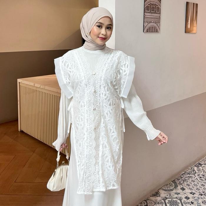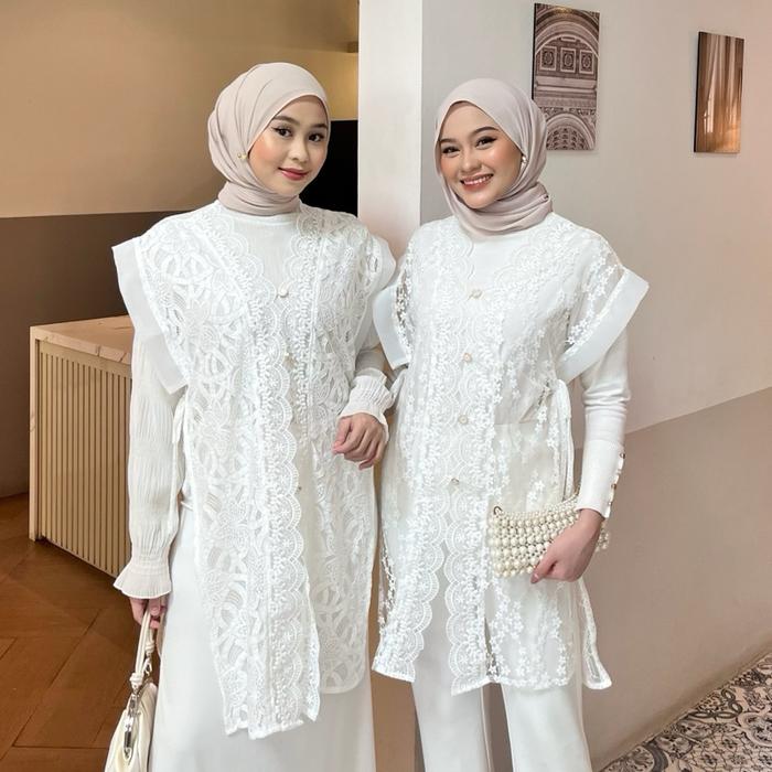 Runa Vest | Rompi Brukat | Brukat Vest | Outer Brukat | Vest Brukat Atasan - Broken White Aurora
