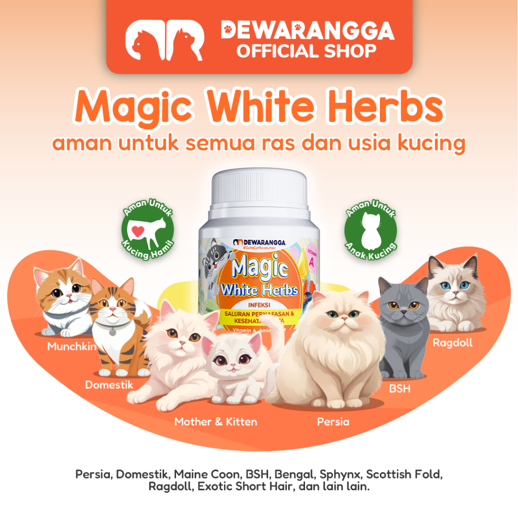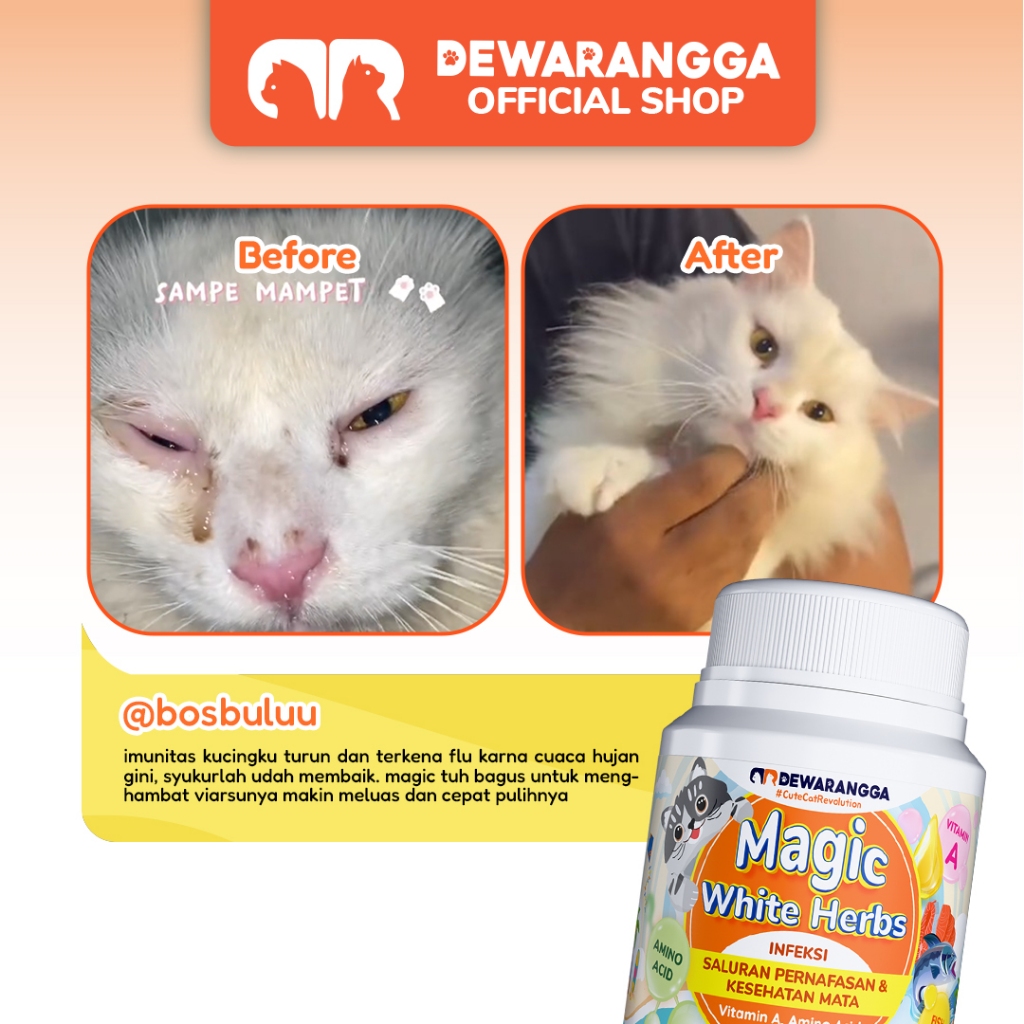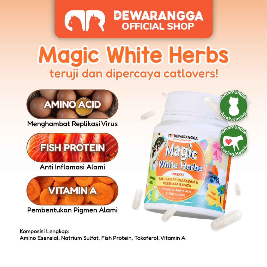 Dewarangga Vitamin Kucing MAGIC WHITE HERBS untuk Mengatasi Infeksi Saluran Pernafasan dan Kesehatan Mata, Mengatasi Flu