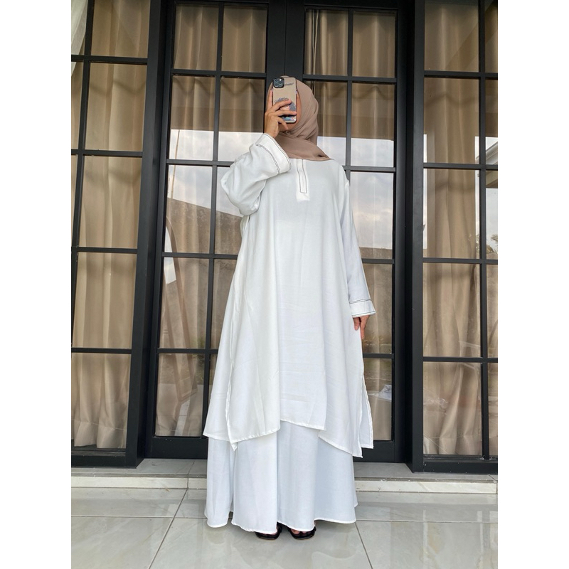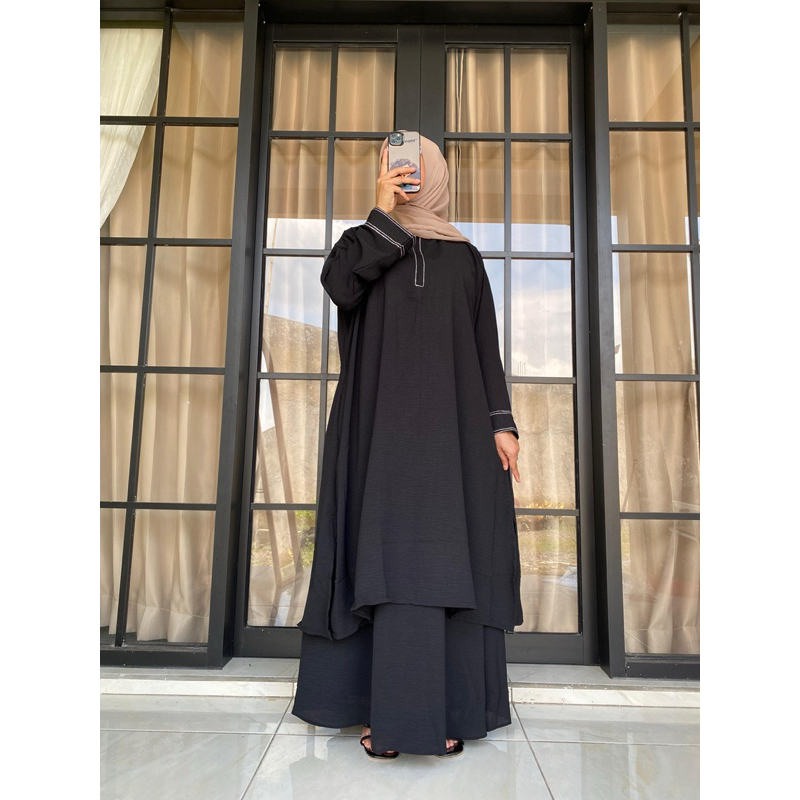 Setelan Tunik Rok Syari Fatimah dengan Saku dan Resleting untuk Ibu Menyusui - Gamis, Wanita