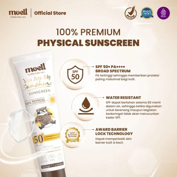 Moell Skin Protection - Face Cream 40gr & Physical Sunscreen 30gr & Body Lotion 185gr - Skincare Baby - Natural Organic