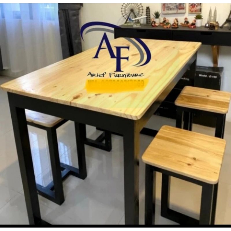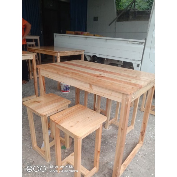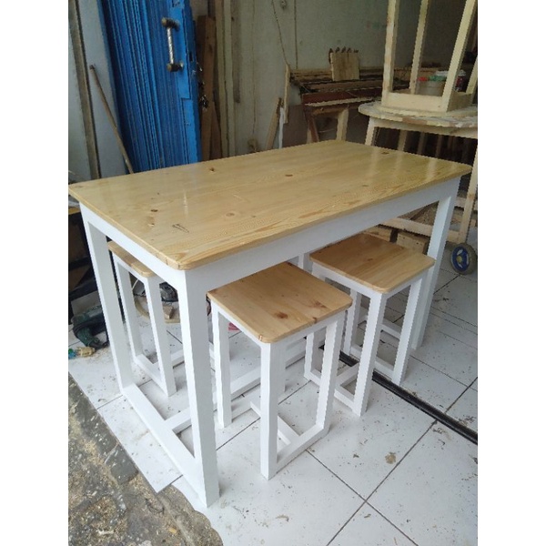 meja makan 1 set cafe resto warung +4 bangku