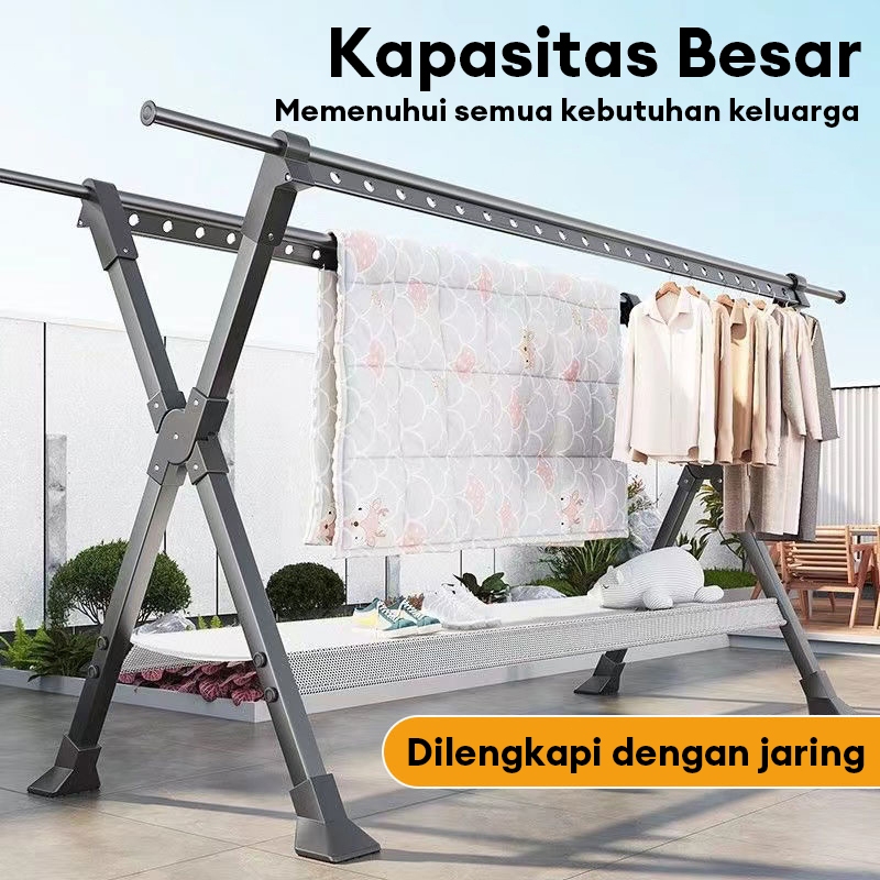 Jemuran Baju Stainless Steel Jumbo Lipat & Portable 130–230 Cm Anti Karat Karat Jemuran Baju Besar 100% Stainless Steel