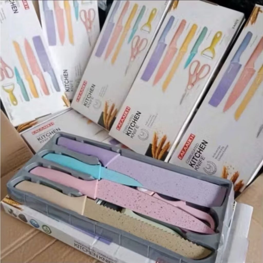 Dapur Set 6 in 1 Bahan Stainless Steel Premium Kitchen Knife Set Stainless Steel Anti Lengket