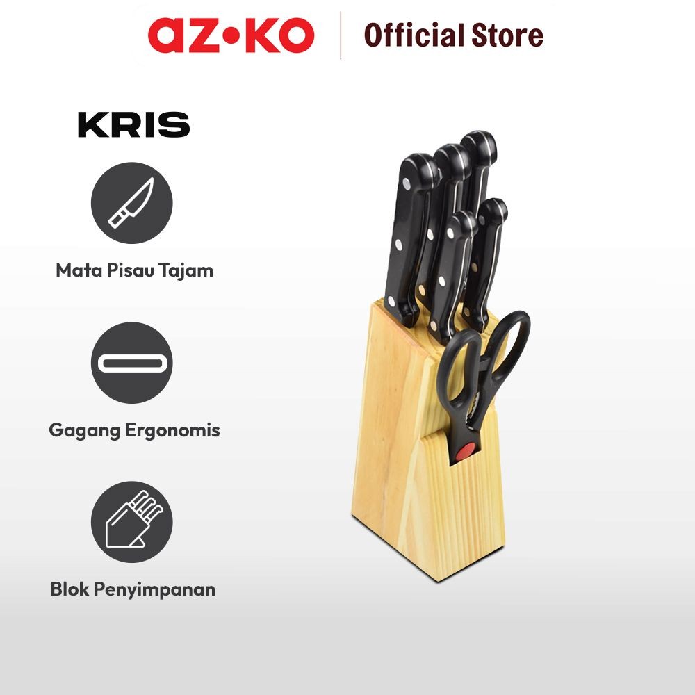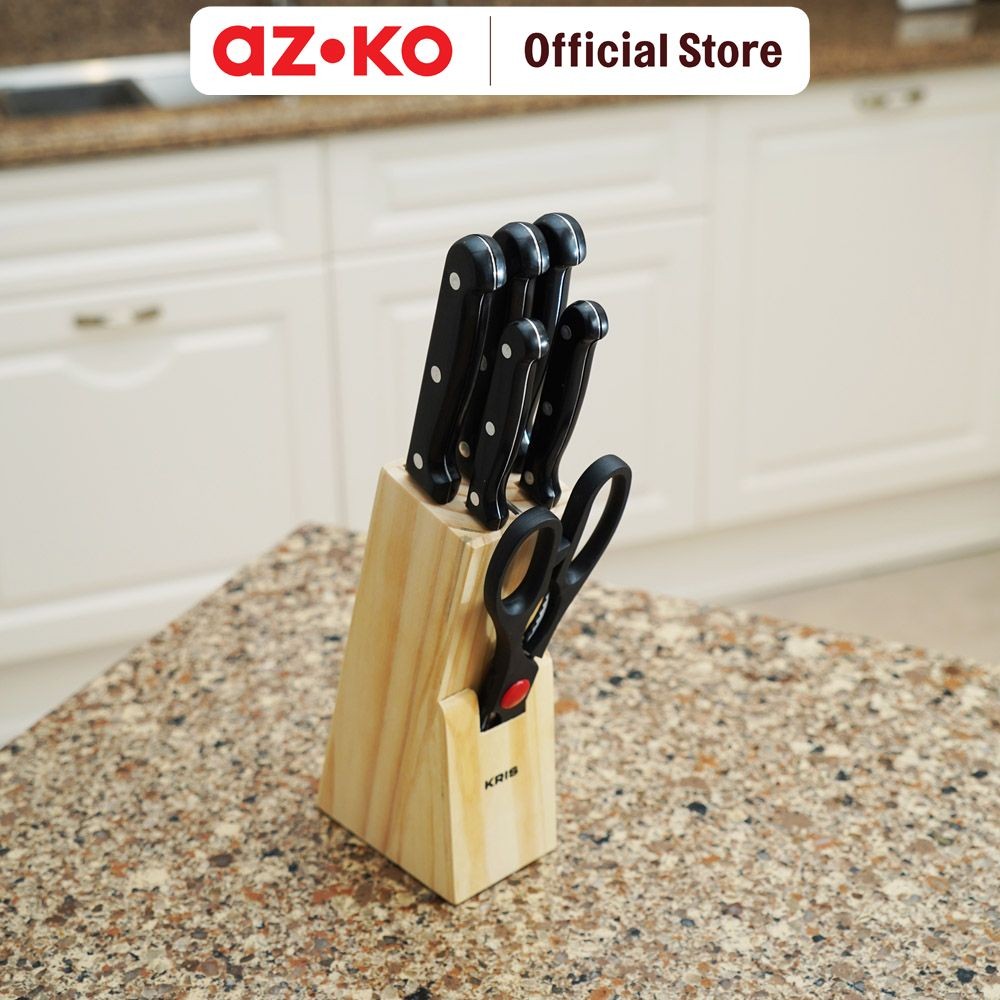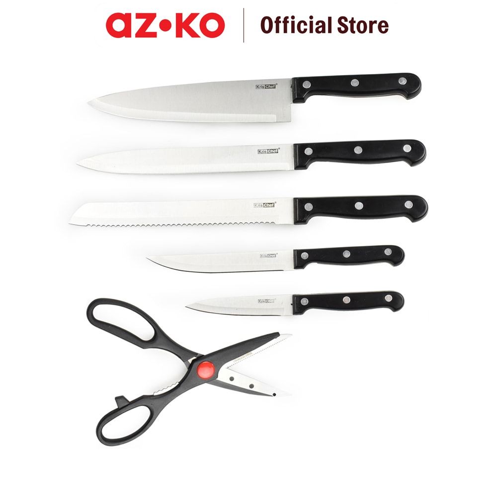 AZKO Kris Set 6 Pcs Dapur Dengan Block Penyimpanan - Hitam Knife Set Cooking Knife Set Piso Dan Holder Piso Perlengkapa