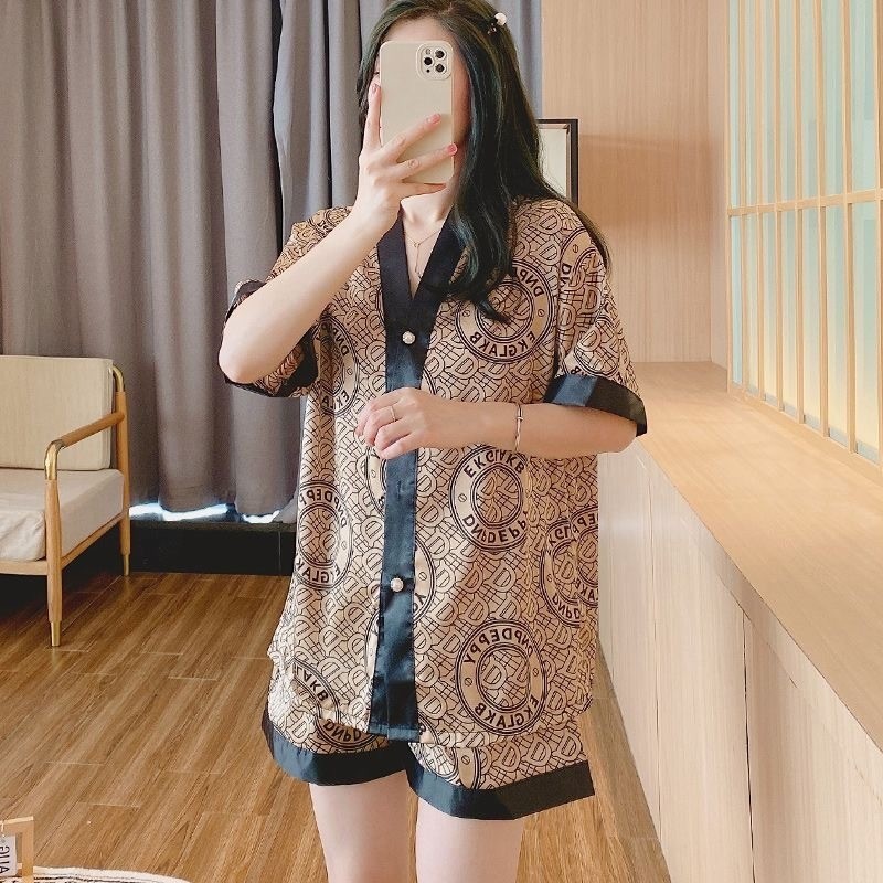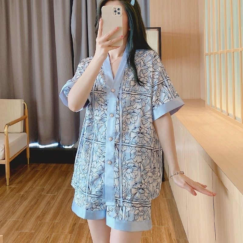 2025 baru sutra es sutra lucu piyama wanita pakaian rumah lengan pendek celana pendek setelan