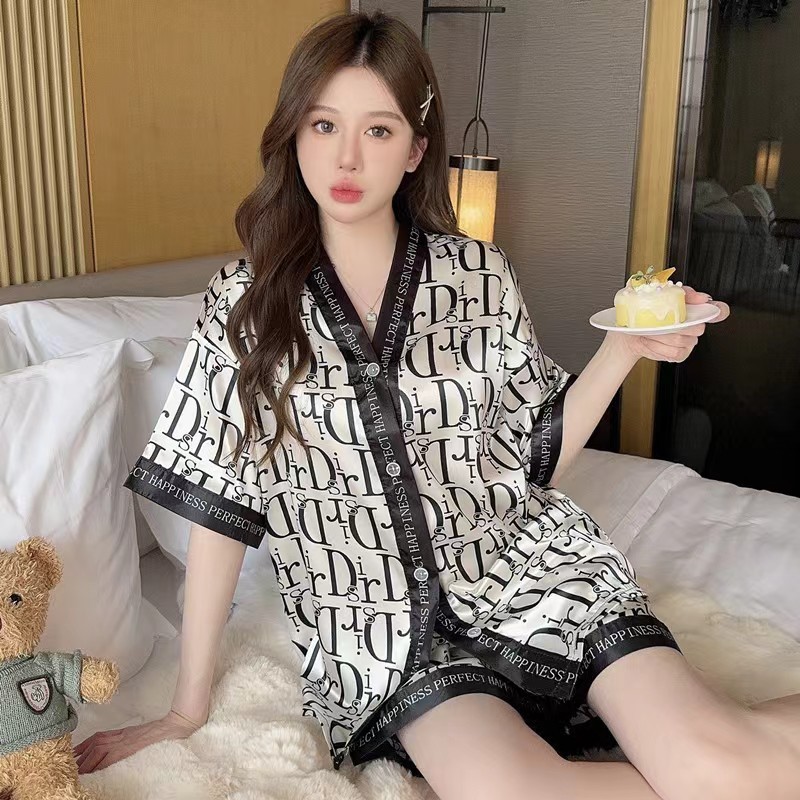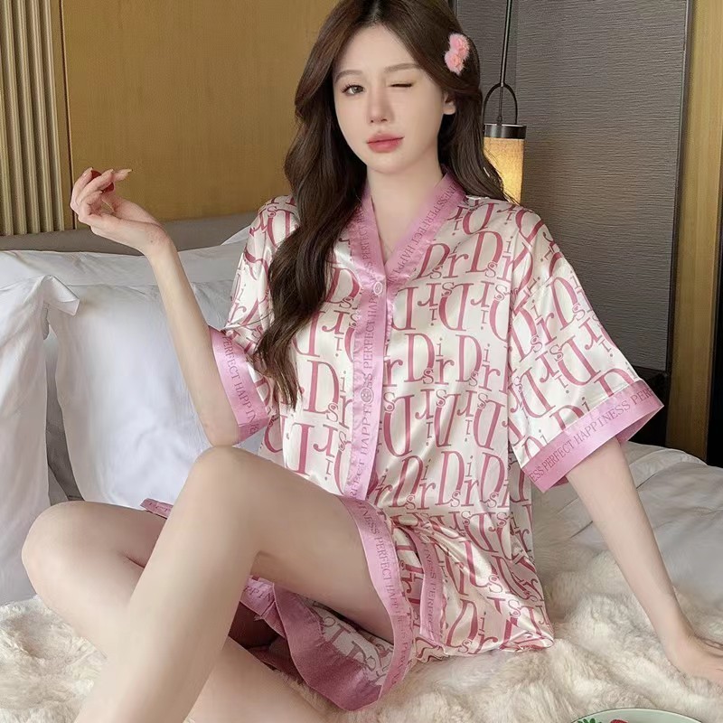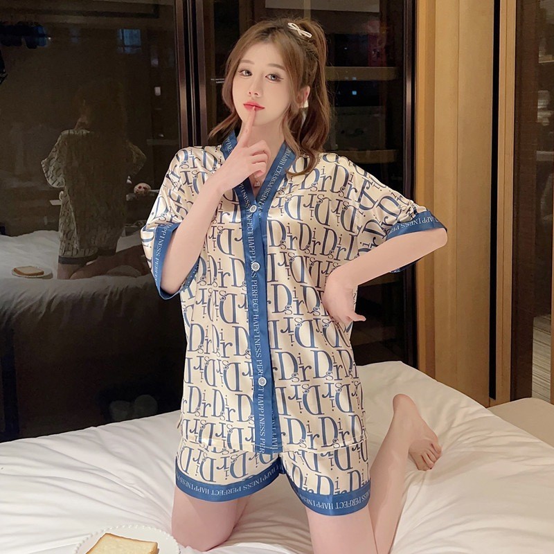 2025 baru sutra es sutra lucu piyama wanita pakaian rumah lengan pendek celana pendek setelan