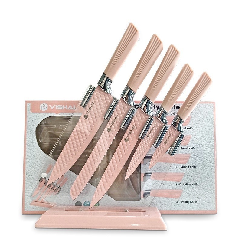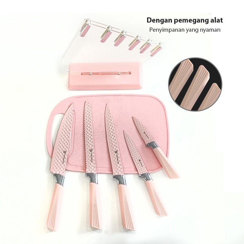 [Readystok]❤6 IN 1 Knife Set / Dapur / / Ada Tempat Merah muda VS-1845