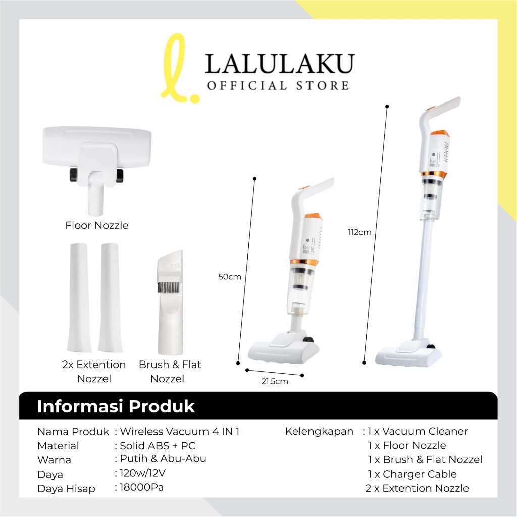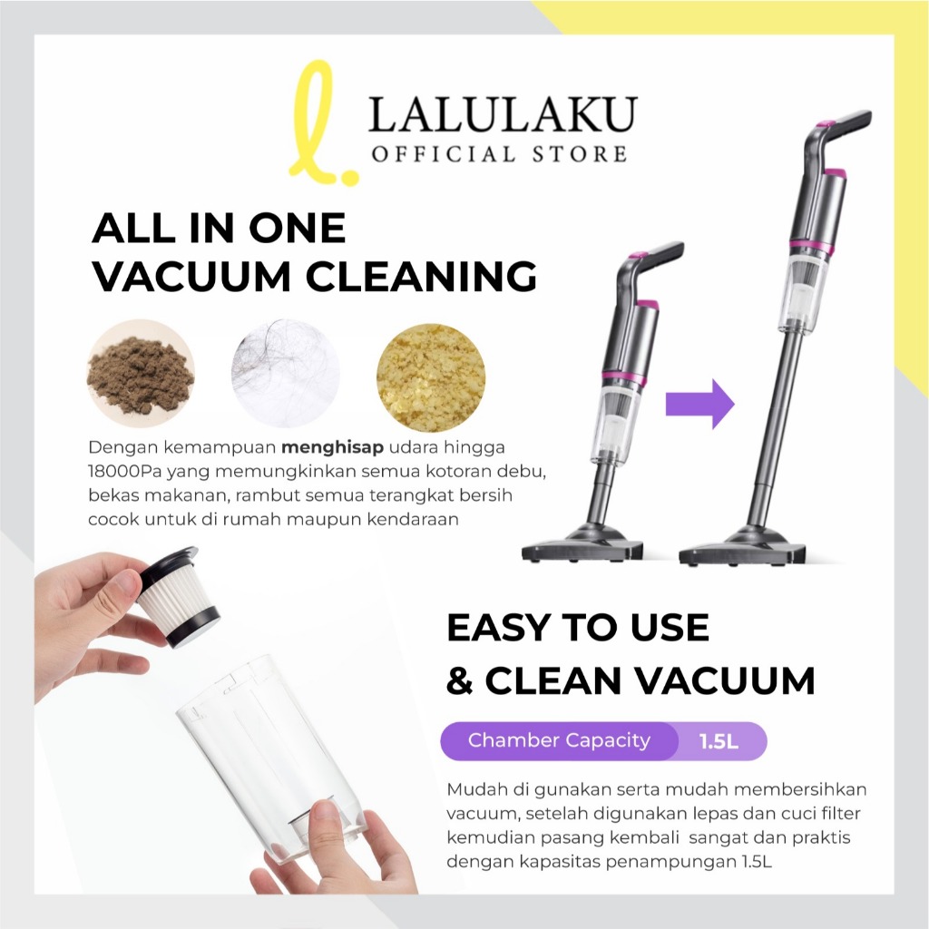 La Natuna Vuum Cleaner 5in1 Kapasitas 1.5 Liter 18000Pa Portable Mini Penyedot Debu 120W Rechargeable vuum tanpa kabel