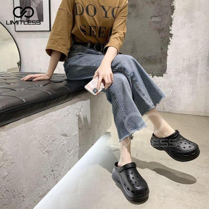 Limitless Sandal Wanita Polos Sandal Cewe Baim Tinggi Sendal Kodok Wanita Cewek Karet Fleksibel Korea Terbaru 2025 Wadge