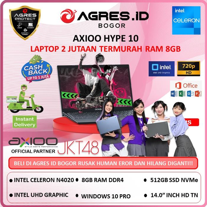 AXIOO HYPE 10 INTEL CELERON 8GB 256GB WINDOWS 10 PRO 14.0 HD (EXCLUSIVE AGRES ID BOGOR) - NON OS, NON BUNDLING