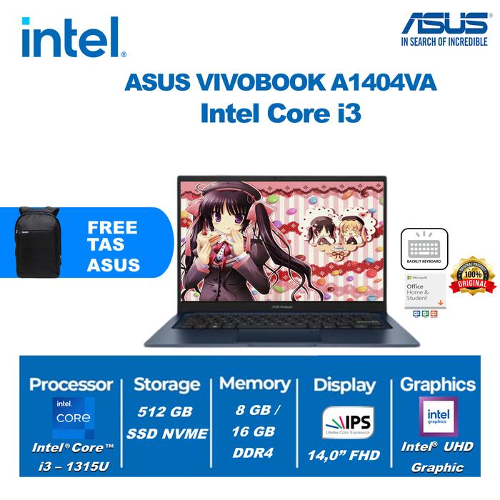 ASUS VIVOBOOK 14 A1404VA - I3 1315U ( GEN 13 ) 8GB 256GB 14" FHD IPS - NON BUNDLE, 8 GB