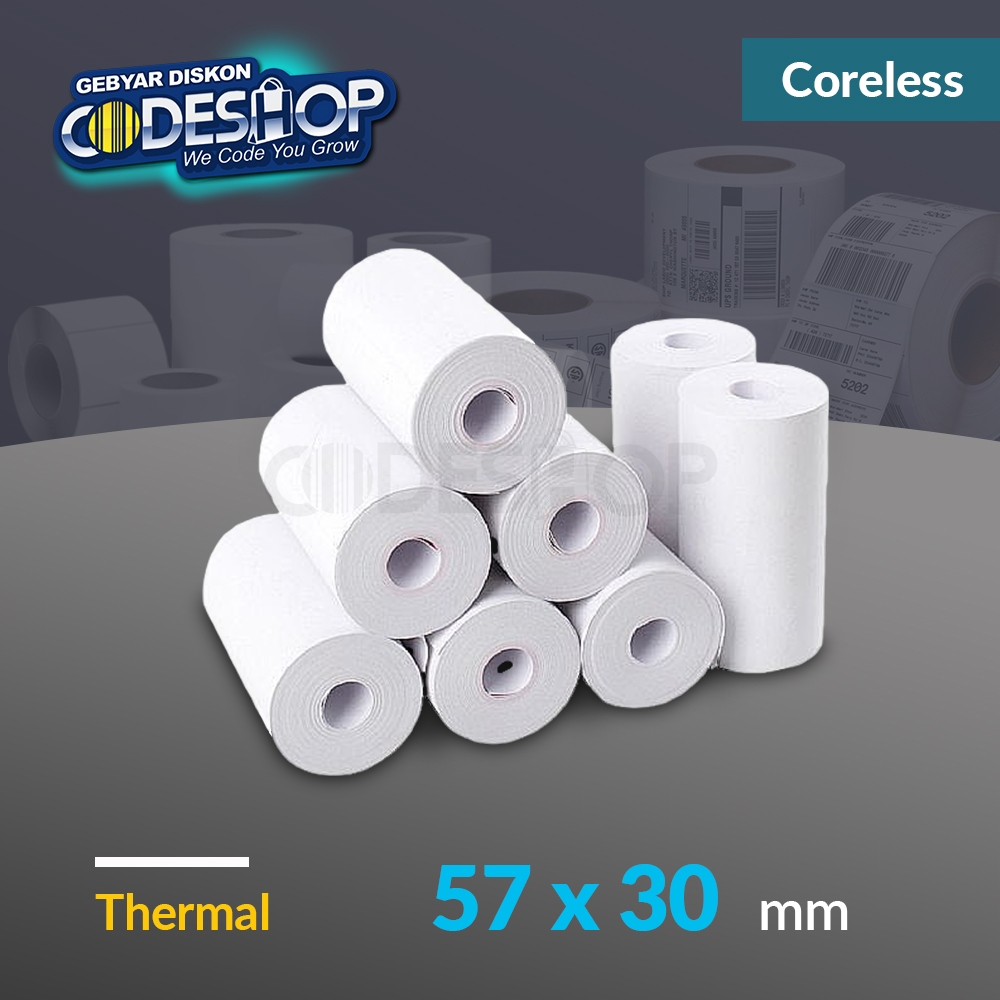 eshop Kertas Thermal 57 x 30 mm Coreless Struk Kasir Printer Bluetooth Termal 58mm (10 Roll)