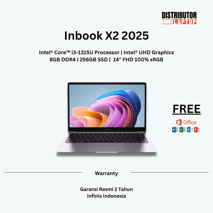 LAPTOP INFINIX INBOOK X2 I3-1315U RAM 8GB 256GB SSD 14" IPS - GREY, NON BUNDLE