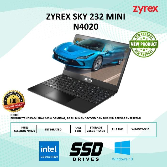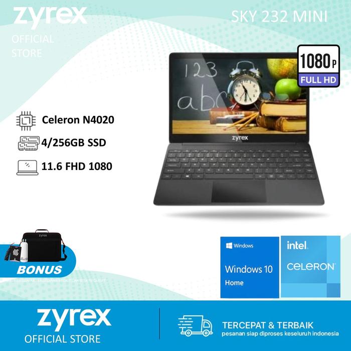 LAPTOP ZYREX SKY 232 N4020 4GB 256SSD+64GB W10 11.6FHD BT - NON BUNDLE, BLACK