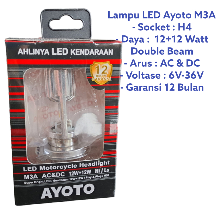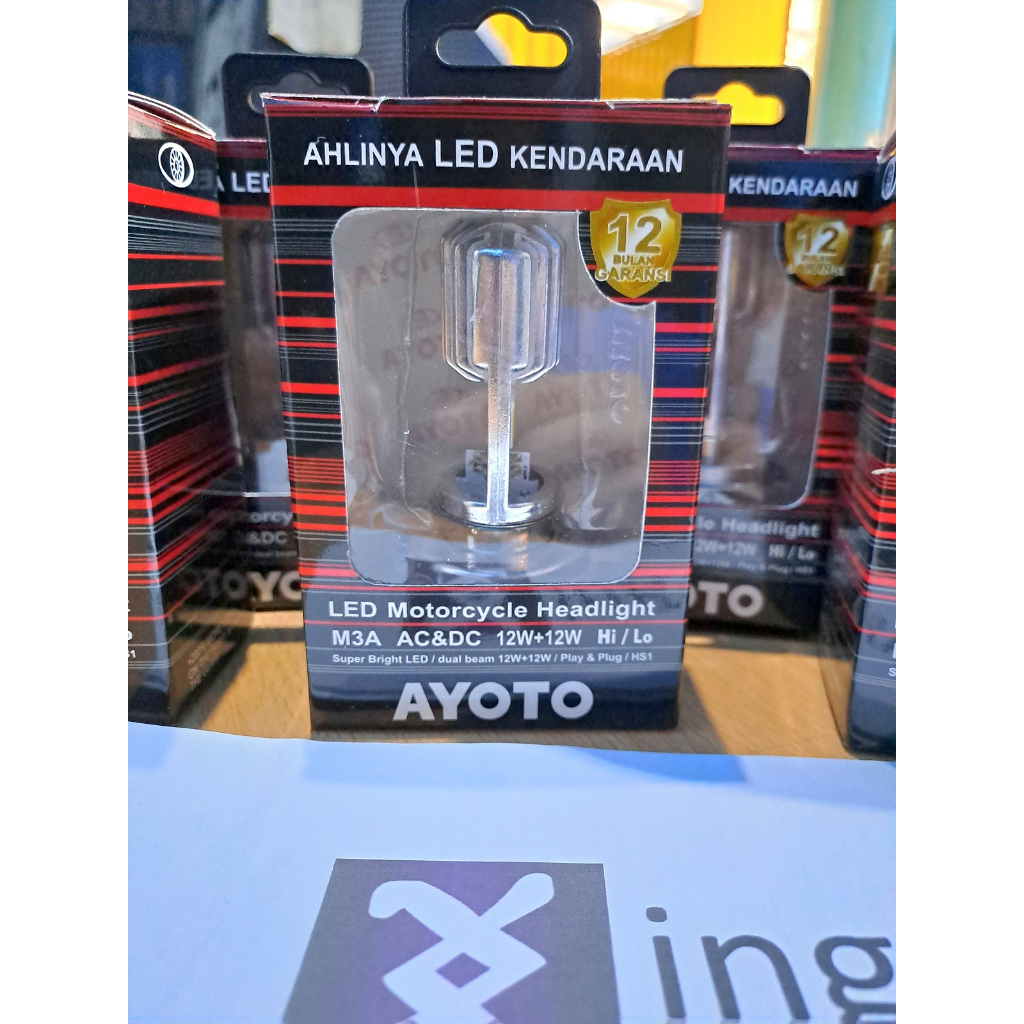 Lampu Utama LED Motor AYOTO M3A H4 HS1 12 Watt Putih Vixion CBR R15 Byson dll