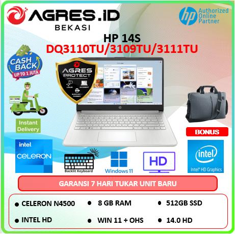 LAPTOP HP 14S DQ3109TU/DQ3111TU N4500 8GB 512SSD 14.0 BLIT W11+OHS - UNIT + FREE AGP, RAM 4GB/512SSD