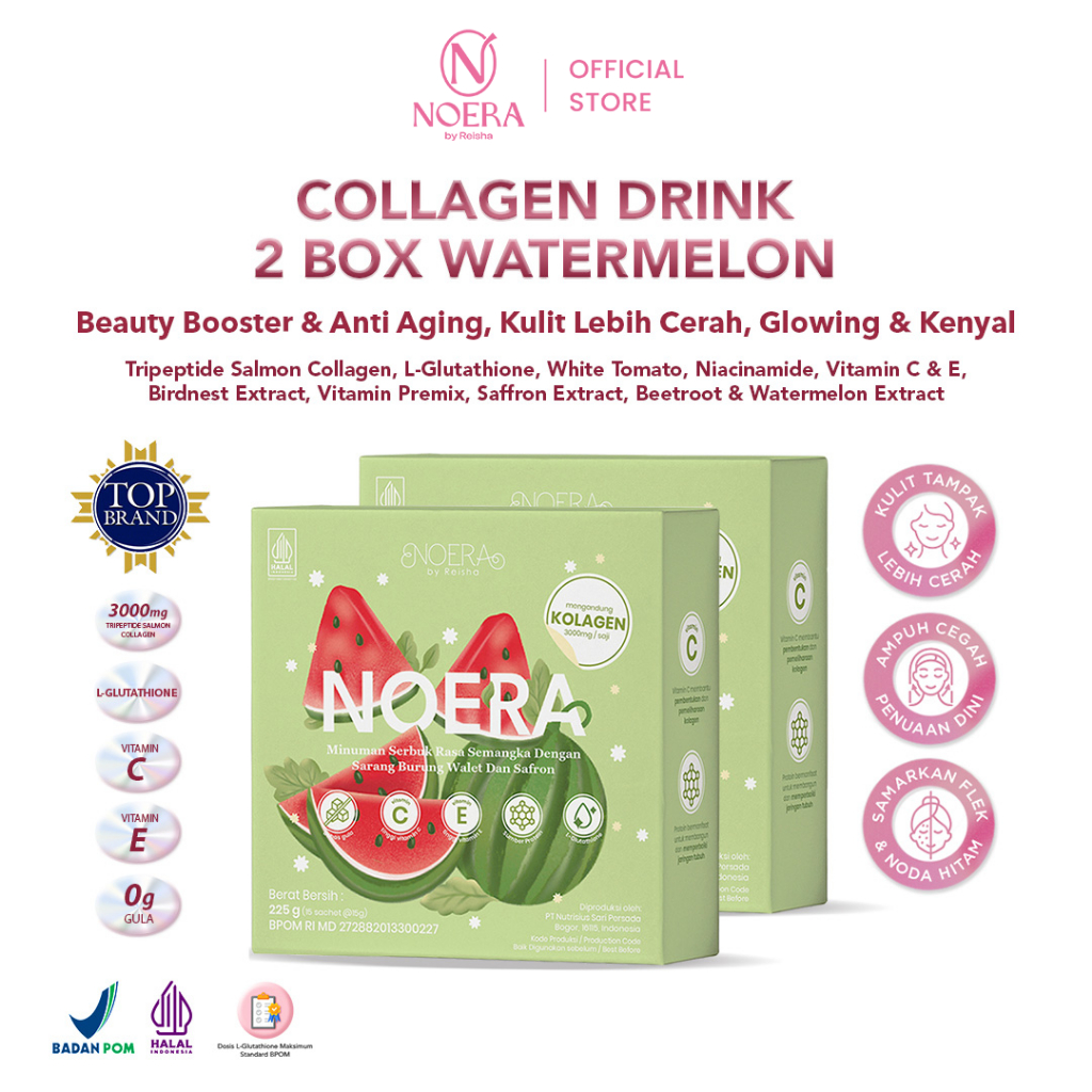 Noera Collagen Drink Watermelon With Birdnest and Saffron Extrt Improved Formula | Minuman Kolagen Glutathione Pencerah