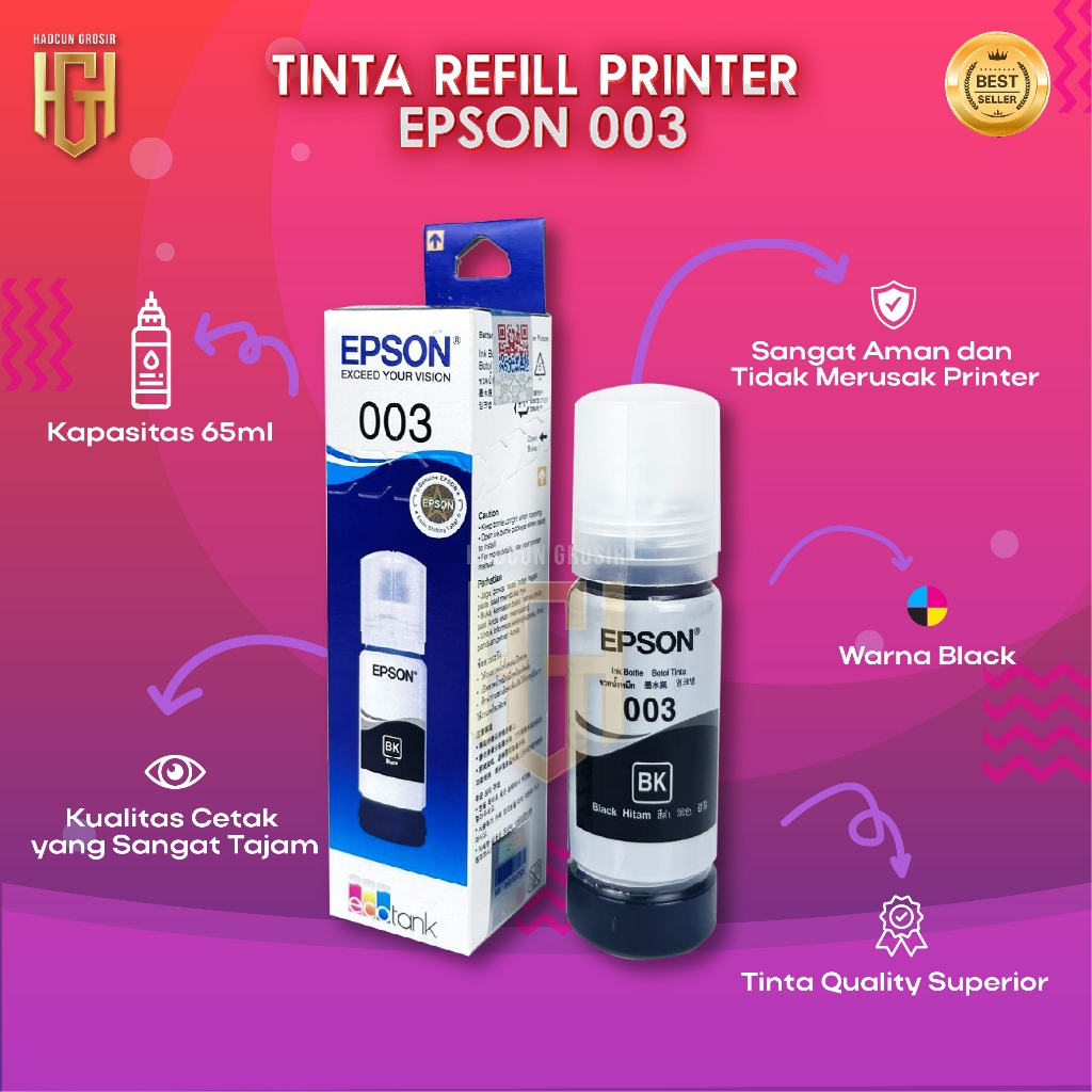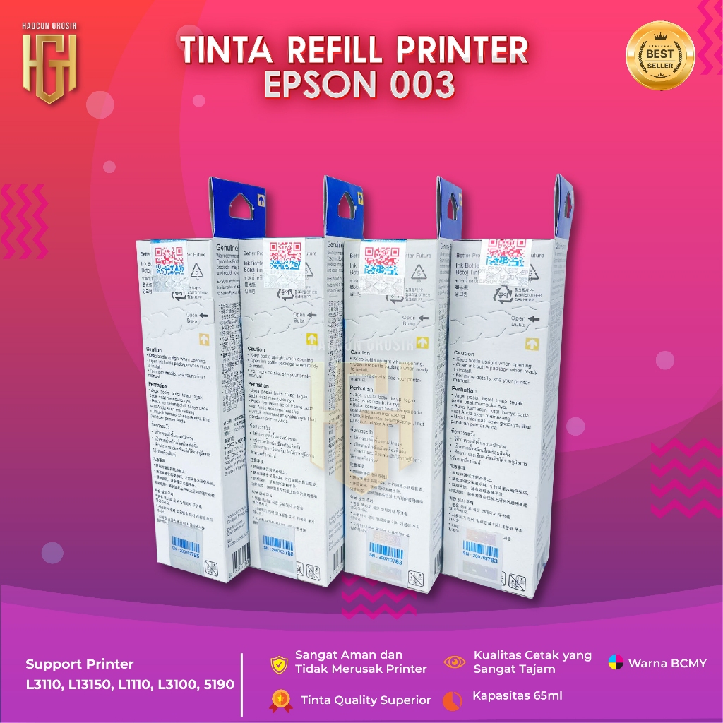 Tinta Epson 003 Refill 70ml Hitam Cyan Magenta Kuning Untuk Epson L1110 L1210 L1216 L1250 L1256 L3100 L3101 L3106 L3110