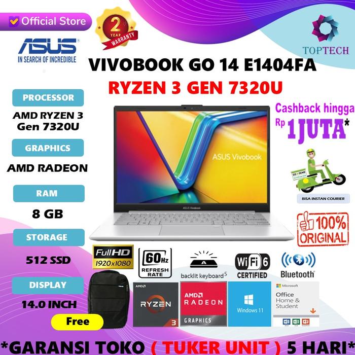 ASUS VIVOBOOK GO E1404FA - RYZEN 3 7320U 8GB 512SSD R610M W11+OHS FHD - 8GB 256SSD, NO BUNDLING