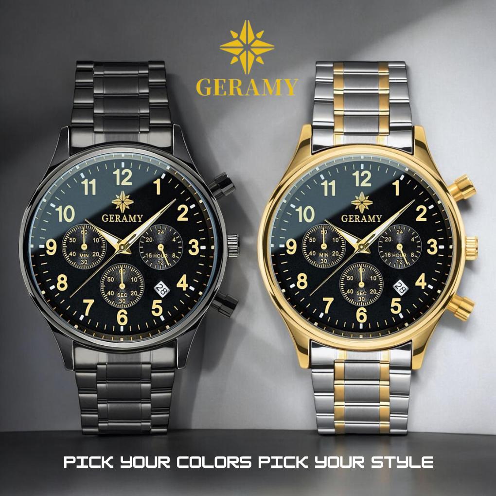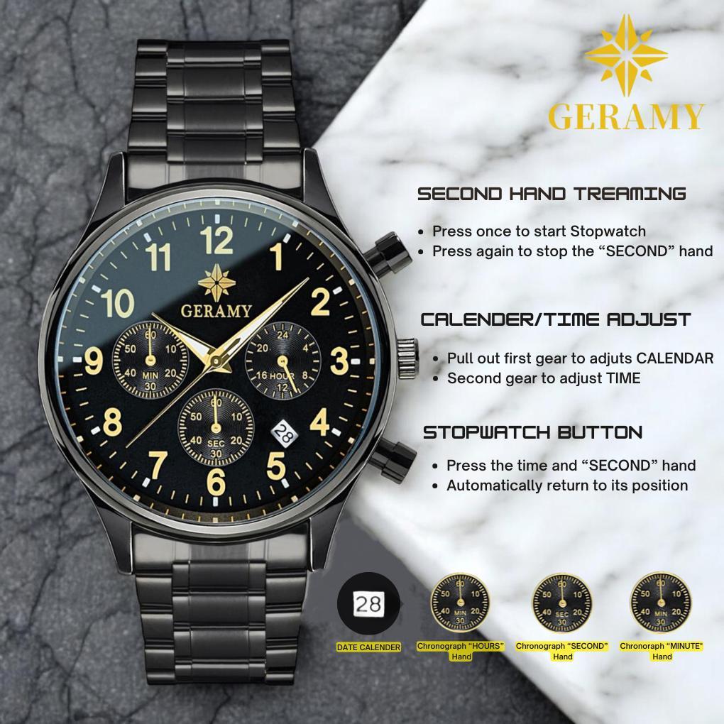GERAMY S007 Jam Tangan Pria Original Anti Air Stainless Steel Quartz Kalender Multi Fungsi Chronograph