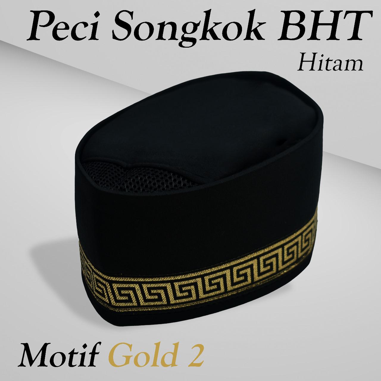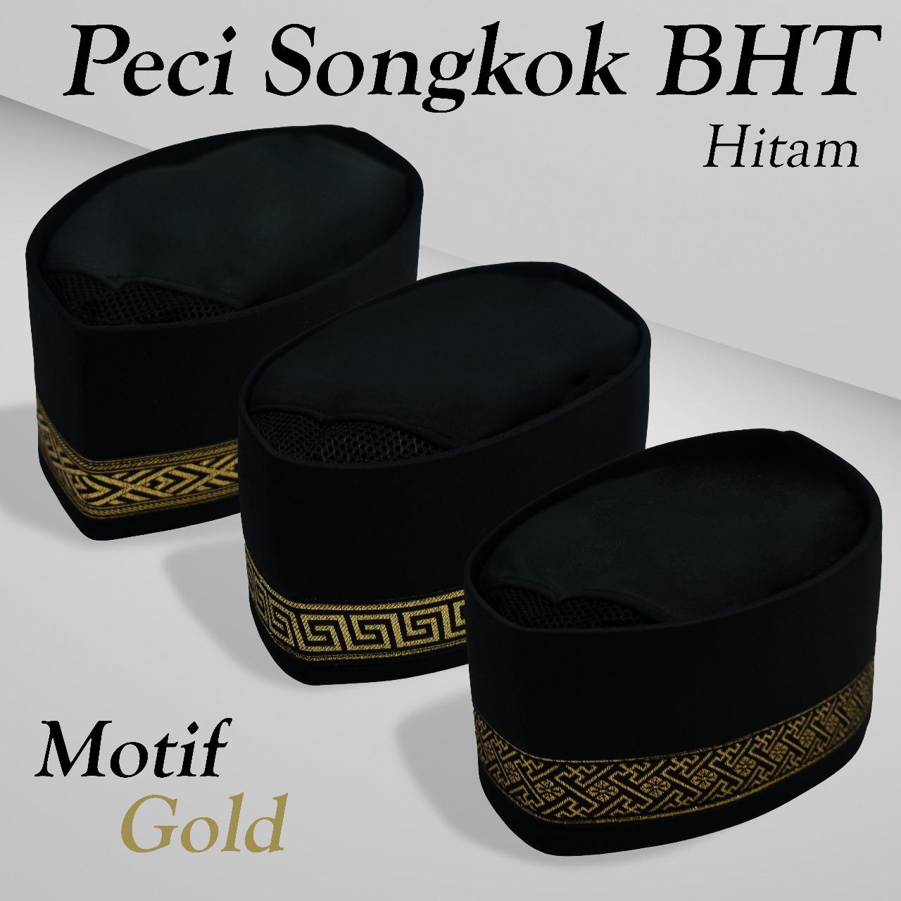 Peci songkok kopiah BHT harga terjangkau kualitas bagus motif list warna gold ukuran dewawsa