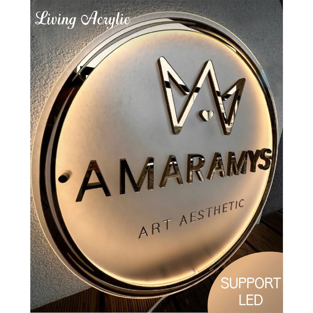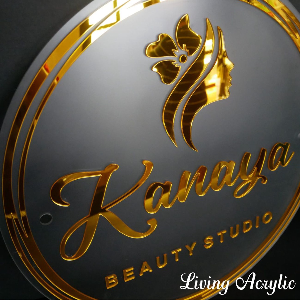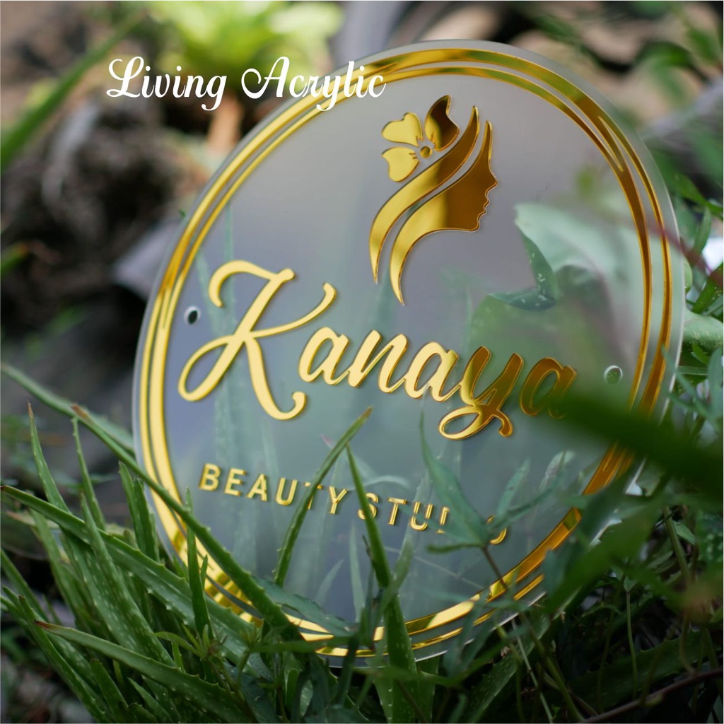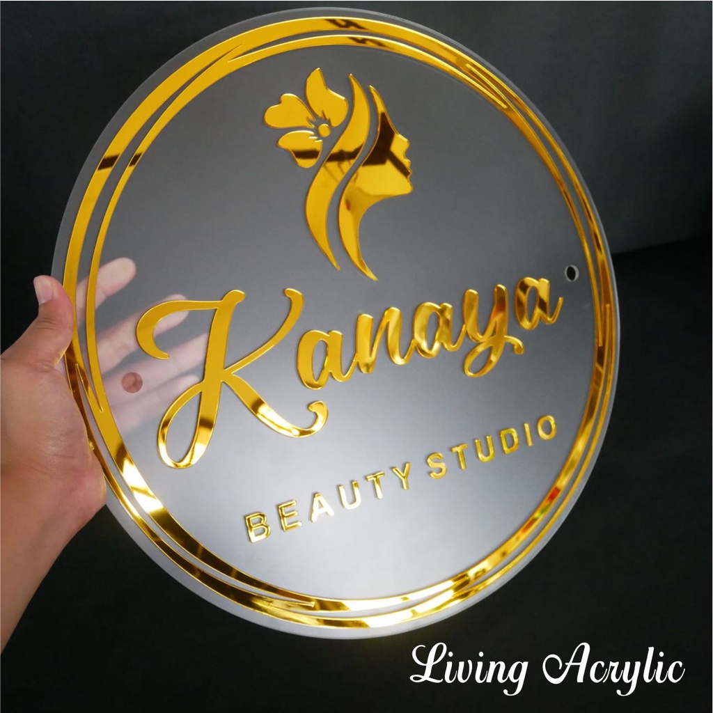Eksklusif Papan Nama Toko Akrilik Gold Logo Klinik Coffe Shop Butik