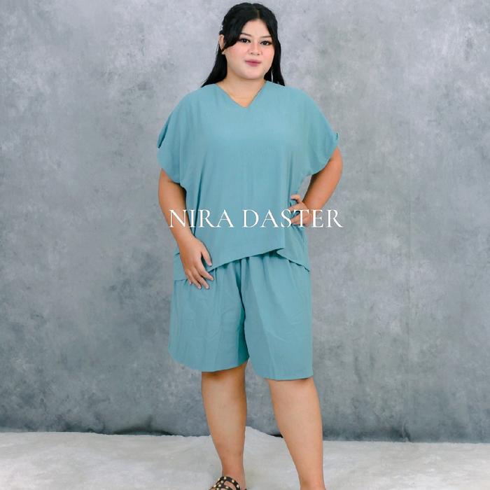[Nira Daster] Setelan Jumbo Crinkle Airflow Polos Setelan Celana Pendek Wanita Setelan Lengan Pendek Setelan Wanita Baju