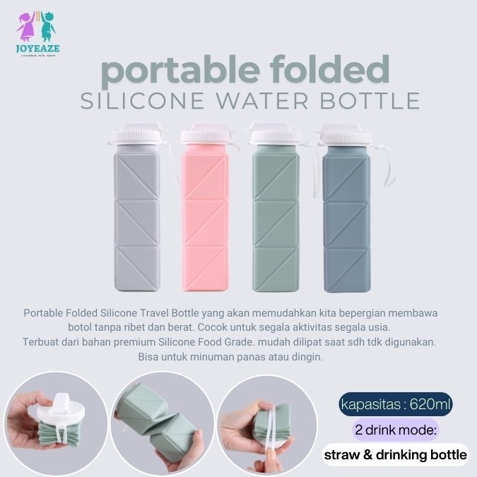 NEW Arrival [Joyeaze] Portable Folded Silicone Water Bottle Straw & Drinking Bottle 620ml / Botol Minum Lipat