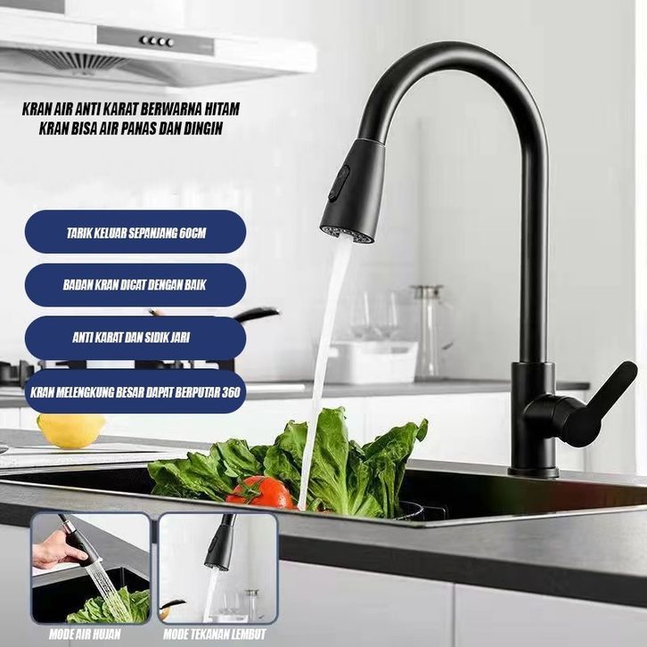 Kran Sink Tarik Keran Cuci Piring Fleksibel SUS304 Stainless Faucet Sprayer kran Cuci